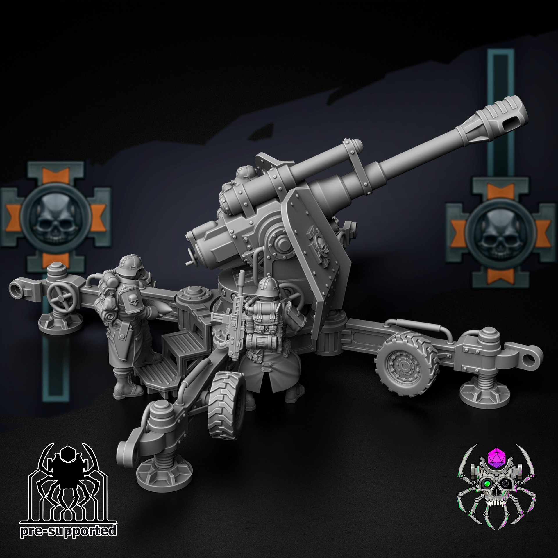 Unpainted miniatures Printed in 3D 8K Resin. Comes in pieces for safe transport and easy assembly. Printed with supports and may have small imperfections requiring minimal sanding and touch up.